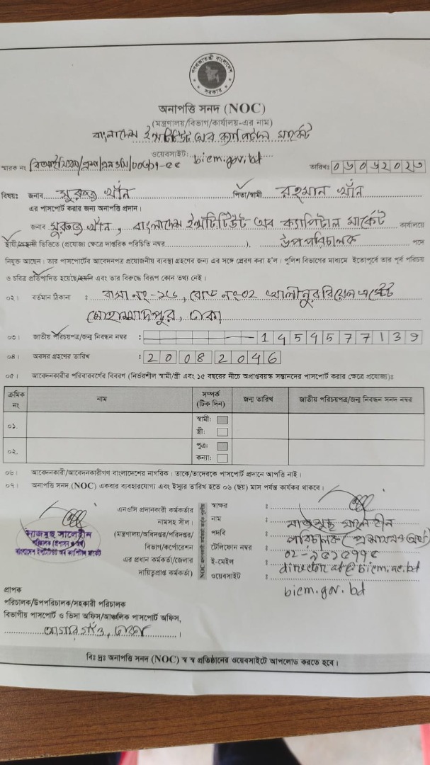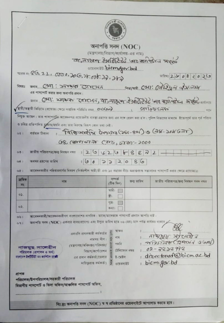 | ৬ | জনাব সুরুজ খাঁন, উপ-পরিচালক এর পাসপোর্ট করার নিমিত্তে অনাপত্তি পত্র | বিআইসিএম/প্রশা/এনওসি/০০৩/১৭-৫৫ | প্রশাসন | ০৮-০৬-২০২৩ |  |